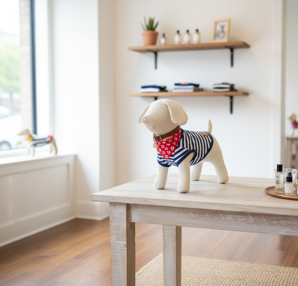 - Versatilidad para tu Colección: Ideal para exhibir una amplia gama de productos: desde chaquetas y suéteres hasta arneses, pañuelos y joyería para mascotas. Su color neutro y elegante no compite con los diseños, sino que los realza.